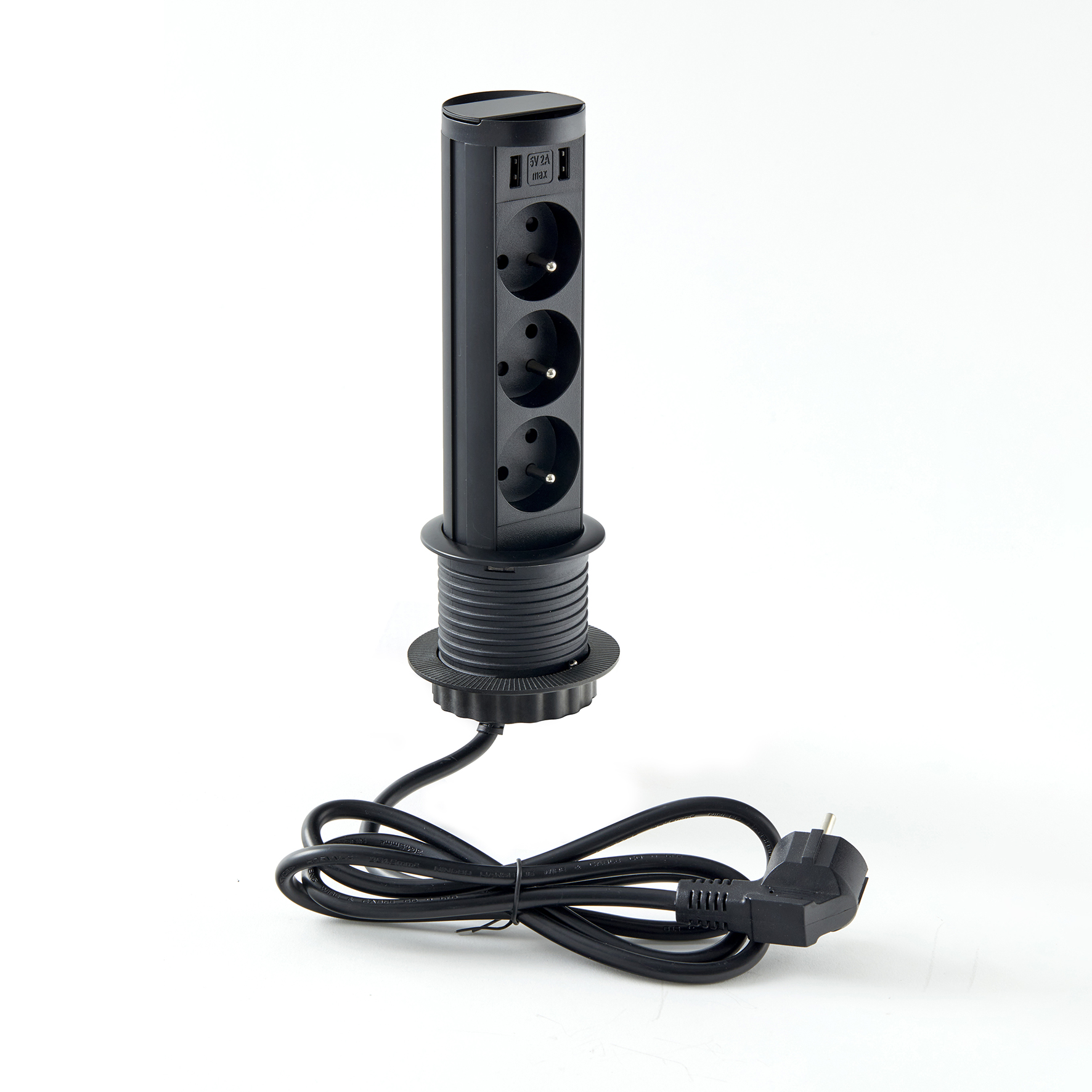 3 sockets 16A 230V or 3 sockets 16A 230V and 2 USB 2A 5V