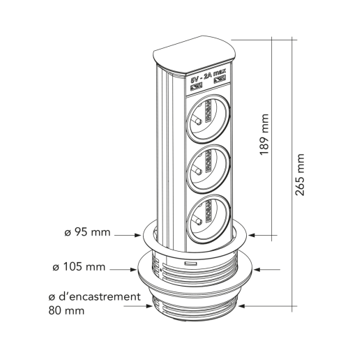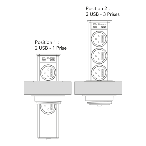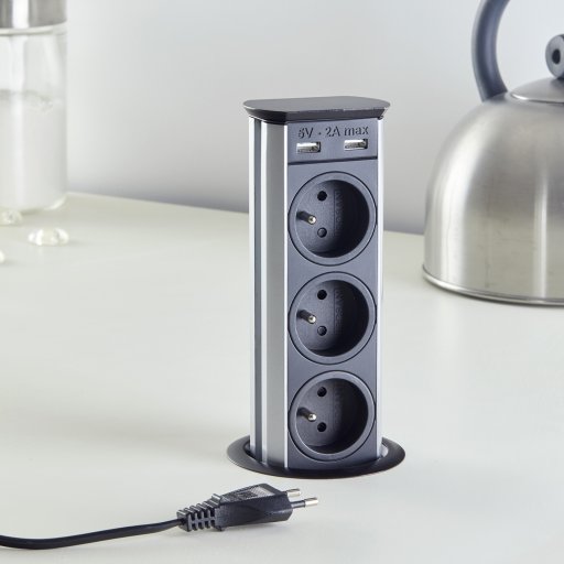 • 3 prises 16A 230V et 2 USB 2A 5V